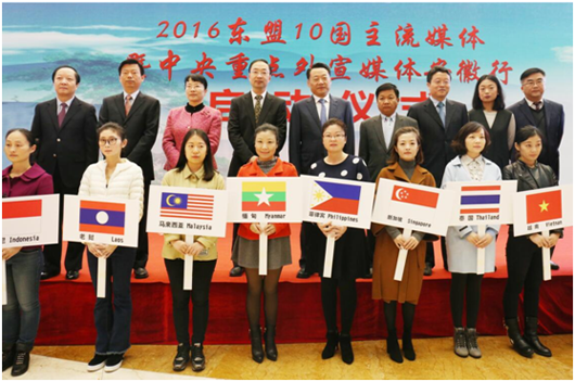 11月7日由公司承办的“2016东盟10国主流媒体暨中央重点外宣媒体安徽行”在安徽合肥举行了启动仪式。安徽省委常委、省委宣传部常务副部长虞爱华出席仪式并宣布活动启动。安徽省省委常委、常委副省长(时任安徽省委常委、合肥市委书记)吴存荣接见了东盟媒体代表团。